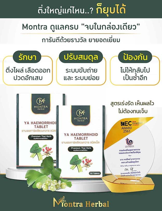 ใช้ยาริดสีดวง Montra ยาแก้อักเสบริดสีดวง บรรเทาปวด ลดการอักเสบ ปลอดภัย ไม่มีสารตกค้าง